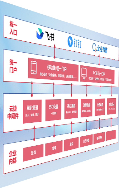 对协作平台提供支持服务,,,支持企业应用与协作平台对接,,,包含组织同步、、、、消息集成、、、待办集成等。。。。支持目前主流的协作平台:钉钉、、企微和飞书。。。